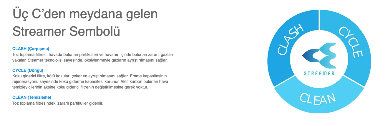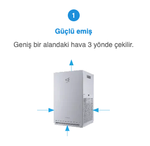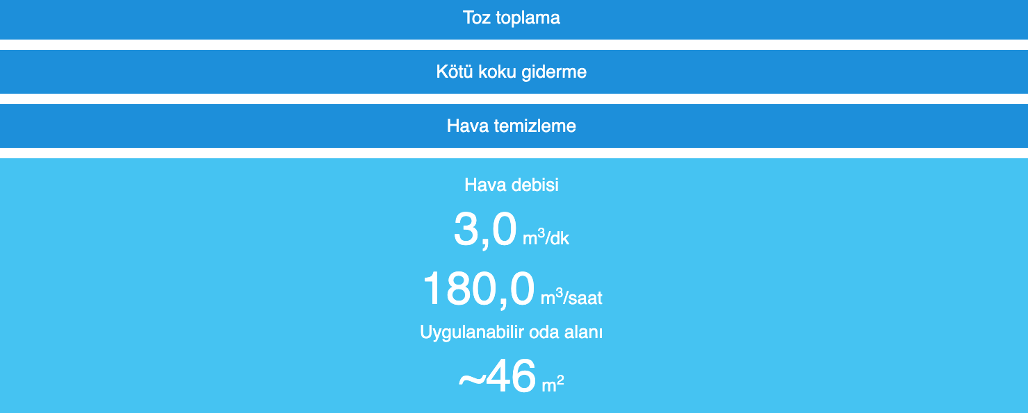 - Konutlarda 46 m²’ye kadar geniş alanlar için optimum hava temizleme