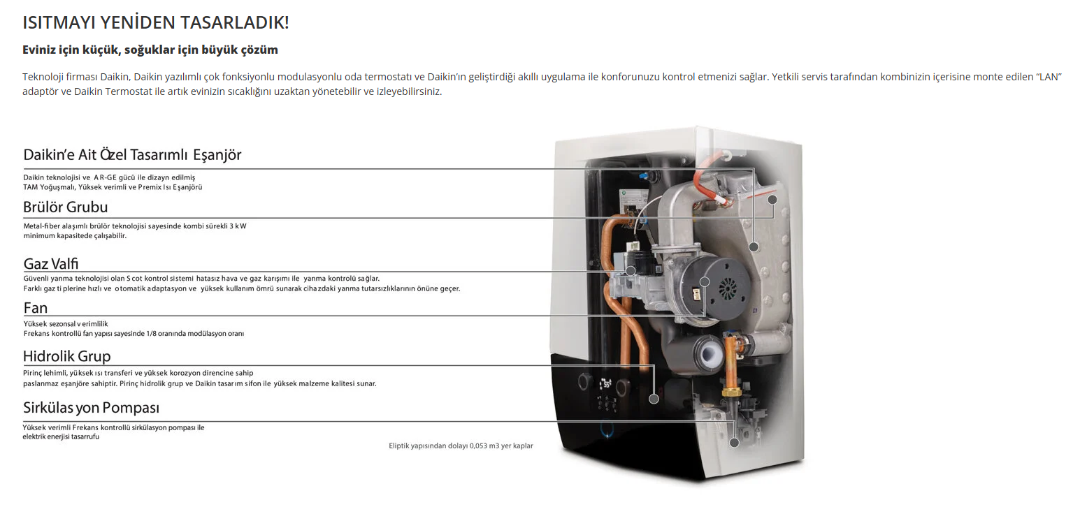 Kendi sınıfında dünyanın en az yer kaplayan kombisini tasarlayan Daikin, Ar&Ge lerinde tasarladığı ısı eşanjörü ile fark yaratıyor.