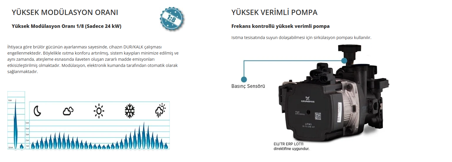 28 kW – A Enerji sınıfı – 1/6 geniş modülasyon aralığı