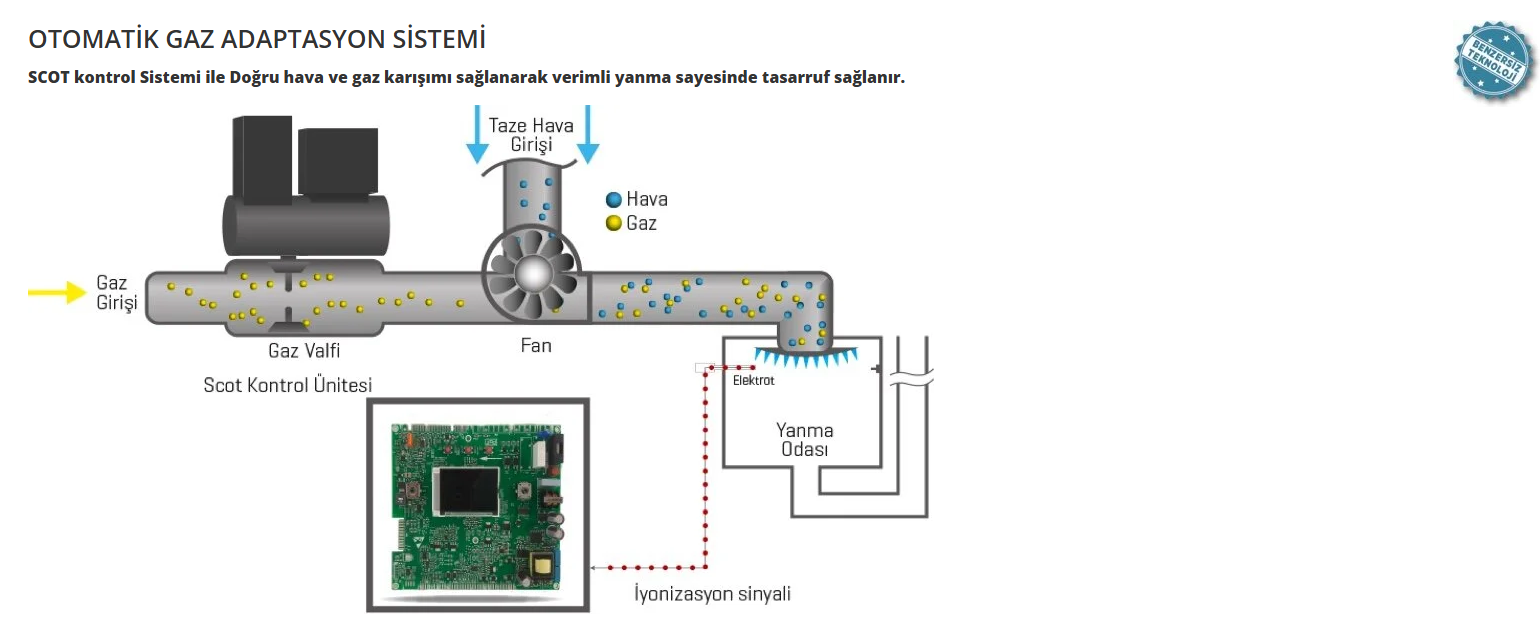 ›› Otomatik gaz adaptasyonu ile güvenli yanma teknolojisi