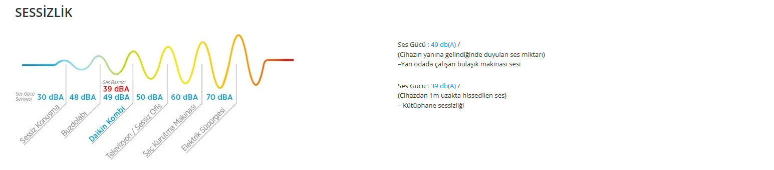 ›› Sessiz kombi (Ses gücü 49 db, ses basıncı 39 db)