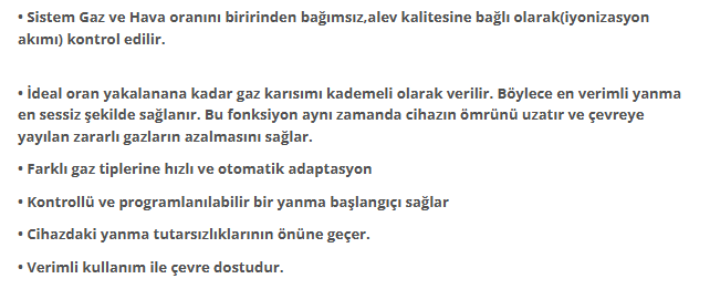 • • Otomatik gaz adaptasyonu ile yüksek yanma verimi ve maksimum yanma güvenliği